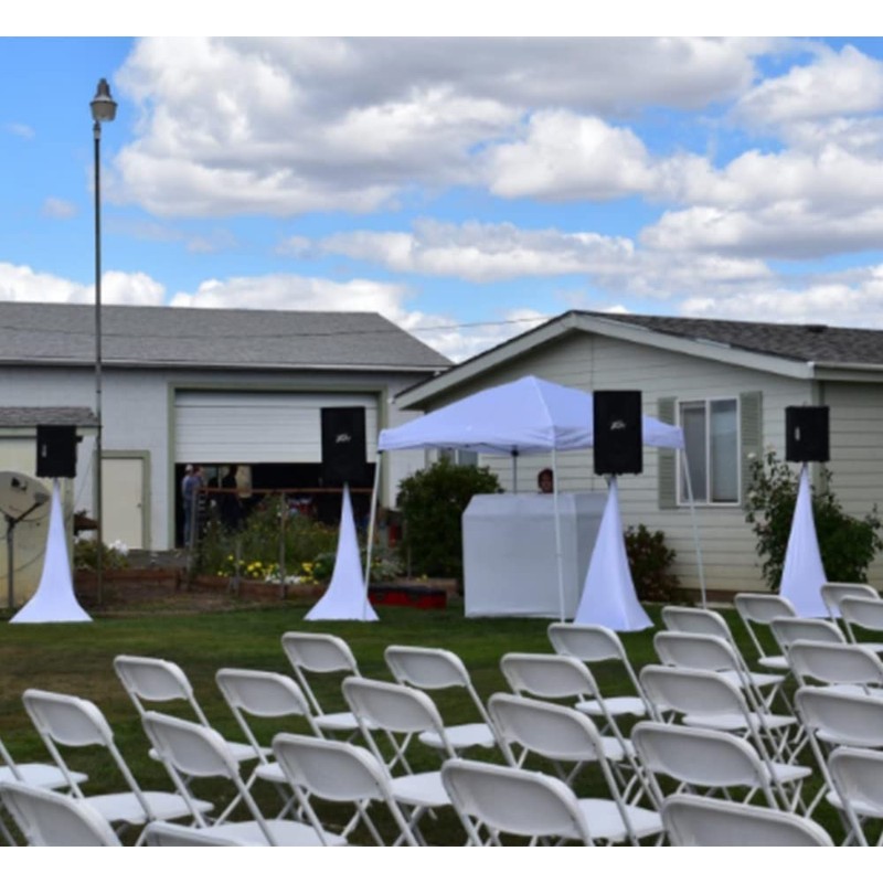 2pcs Floor Speaker Stand Cover Skyour Stretchable Spandex 3 Sided Triangular DJ Support Floor Speaker Tripod Support Stands Tripod Scrim Covers for Weddings Banquets Events White