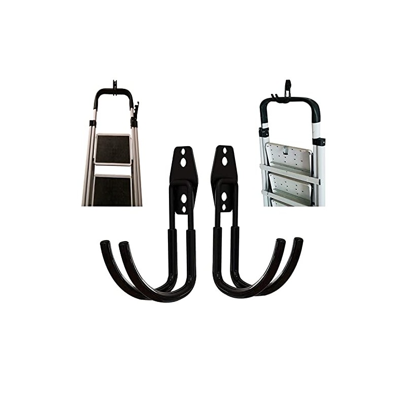 - 2: 2pcs step stool hanger wall mount, Folding Step Stool wall mount Hooks, Telescoping Ladder Storage Hanger – These Storage double hooks your garage or backyard a beautiful look that. the Best Garage or Shed Storage Solution for your organizational. protect your property and store your ladder safely with the Storage Rack.worked well with your ladder, does works perfectly the job. the ladder does fit like it is supposed to, it works great. Very sturdy.