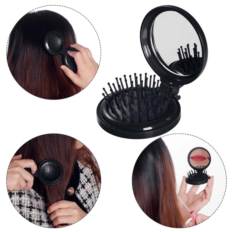 - 【High-quality Material】The round folding pocket hair brushes are made of soft ABS material, equip with rubber bristles and glass mirror, which can effectively massage your scalp. There are 2 mini hair brushes in 2 colors. You can place one in your bag and the other one at home
