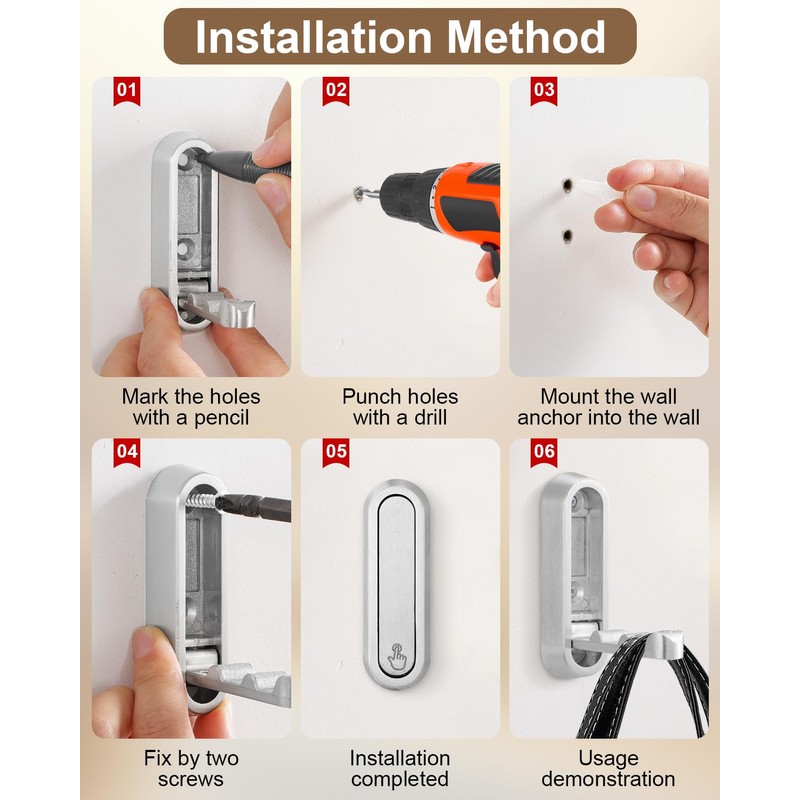 - 【Folding Coat Hooks & Easy to Install】: Our foldable wall hooks for hanging are designed to be compact and easy to install on any wall or surface, you can install them yourself. Mounting hardware includes two screws, two plastic expansion anchors, and comes fully equipped for you.