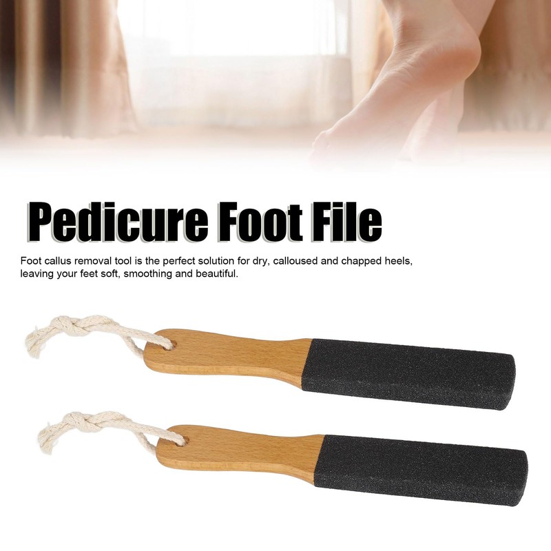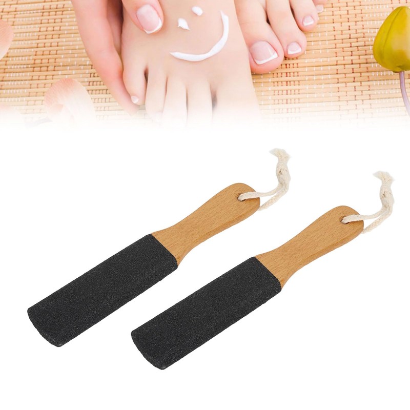 2PCS Foot File Callus Remover, Washable Dry Wet Use Heel Grater Foot Scrubber with Wooden Handle for Dead Skin Dry Rough Corns