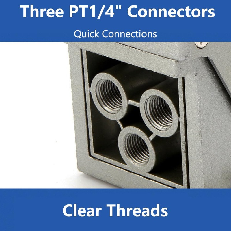 【No Leakage】Pneumatic control switch is made of fine workmanship, smooth surface without burrs, three PT1/4" threaded connectors with clear threads, can be tightly fitted to screws and will not cause gas leakage when the maximum pressure is not exceeded.