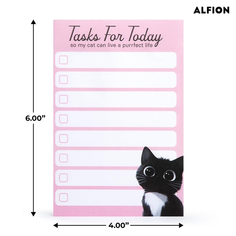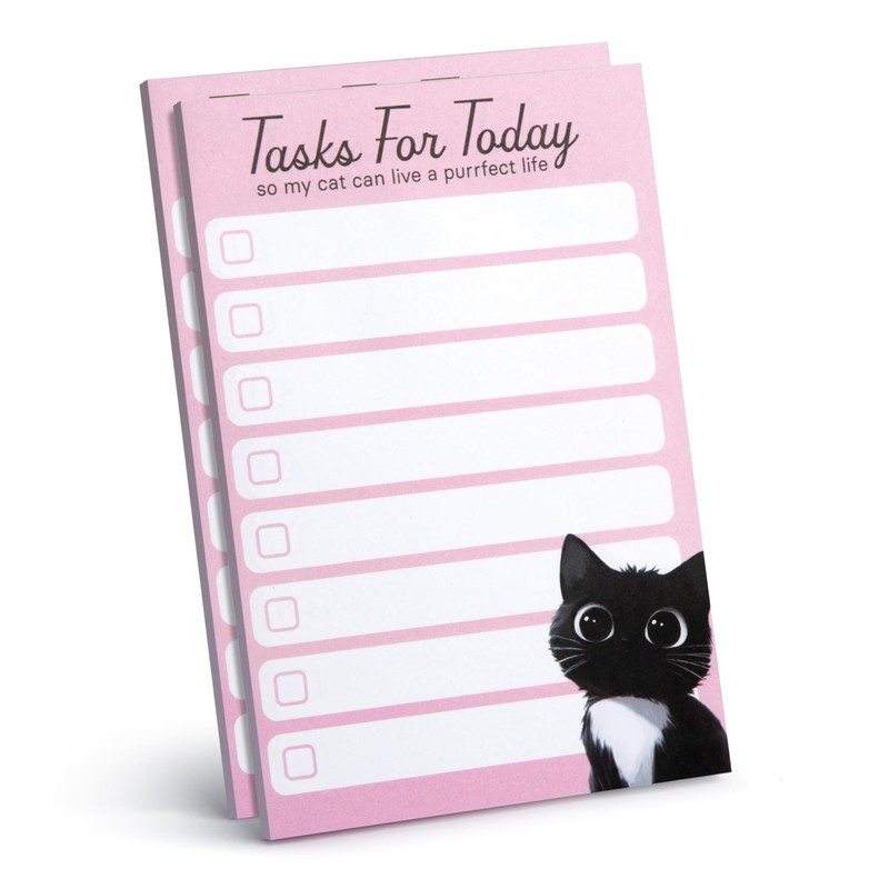 Make everyday tasks more fun with this **2-pack of Funny Black Cat Sticky Notes To Do List Pads**! Featuring an adorable black cat print and a witty pun—*“Tasks for today: so my cat can live a purrfect life”*—these 4x6 inch notepads are a must-have for every cat lover who enjoys adding a bit of humor to their routine.