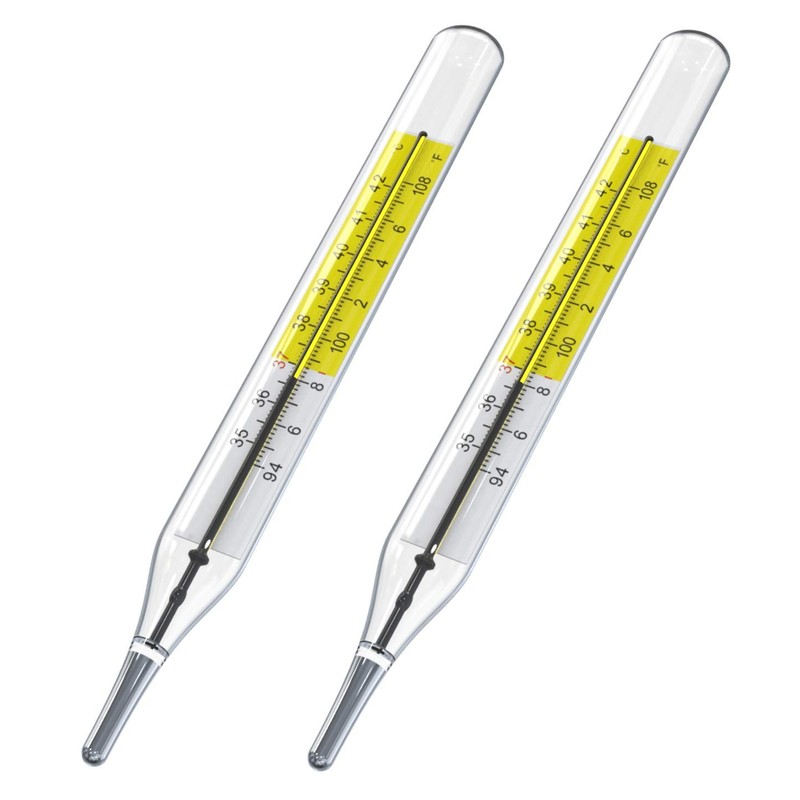 C&F 2PK Mercury Free Dual Scale Traditional Glass Thermometers