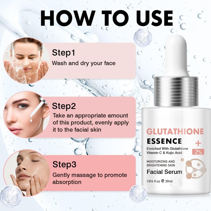 2PCS GLUTATHIONE ESSENCE Enriched With Glutathione Vitamin C & Kogke AcidHyaluronic Acid & Kojic Acid - Lightweight Brightening Face Serum for Dull Skin