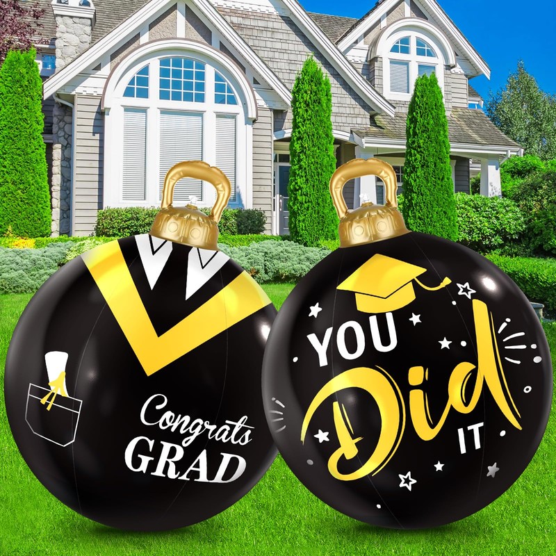 - 💛【Widely Applicable】: The Outdoor graduation Lawn inflatable ball is suitable for school Prom 2024 and graduation party; you can hang it out front door or windows. You can also place them in the yard to decorated with other graduation decorations. This congrats grad decorated ball will display your graduation party decoration by creating an attractive focal point in your yard or porch.