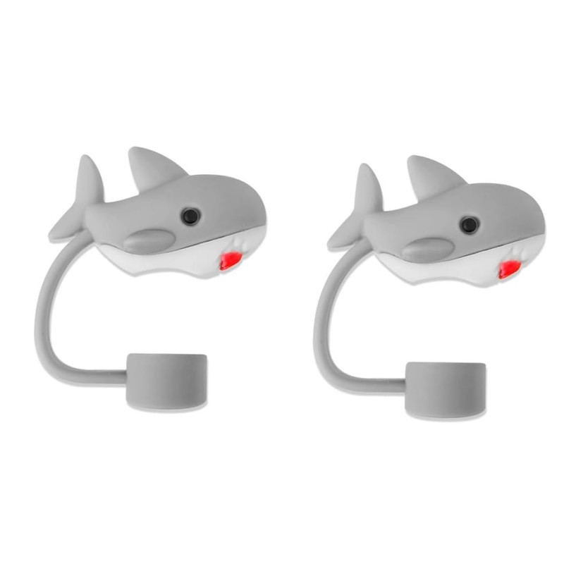 2Pcs Gray Shark Silicone Straw Covers and Caps Compatible with Cups, Drinking Straw Reusable Straw Tips Lids Drinking Straw Dispensers Kitchen Accessories
