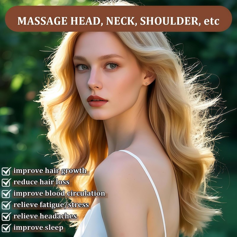 - PROMOTE HAIR GROWTH AND SCALP HEALTH:The scalp massager comb helps enhance blood circulation in the scalp and promotes hair growth.This head massager scalp can regulate tension and reduce hair loss.Improve hair loss by gently massaging your scalp with our hair massager scalp.By improving scalp blood circulation, relieving tension and cleaning hair, the scalp comb creates a healthy growth environment for hair