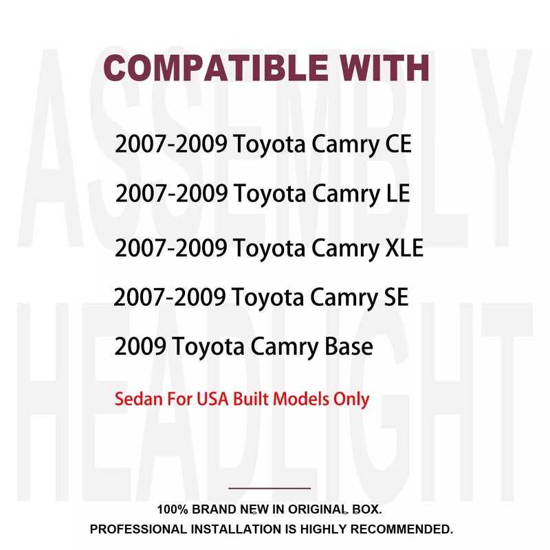 2PCS Headlights Assembly For 2007 2008 2009 Toyota Camry CE LE XLE SE Base Sedan US Built Models Replacement Headlamps Driver and Passenger Side Chrome Housing Amber Reflector