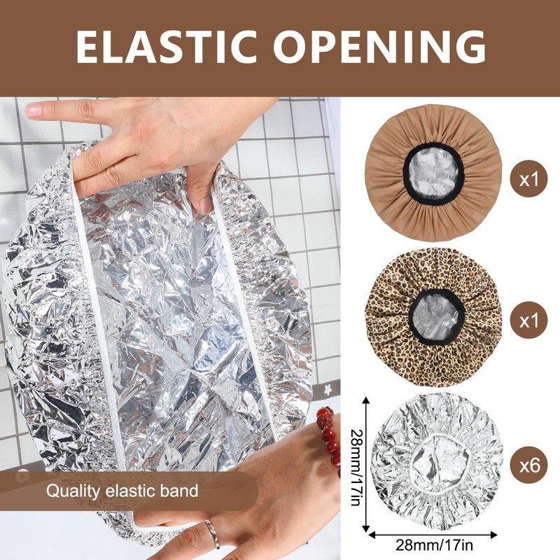 • ✔️High cost performance: You will receive two heat cap for deep care, one in yellow leopard print and the other in coffee color, and 6 silver disposable tinfoil caps, which are sufficient in quantity and cost-effective. Rich choices meet your daily use and replacement needs, and each steam cap is carefully designed to ensure the best hair care experience for you.