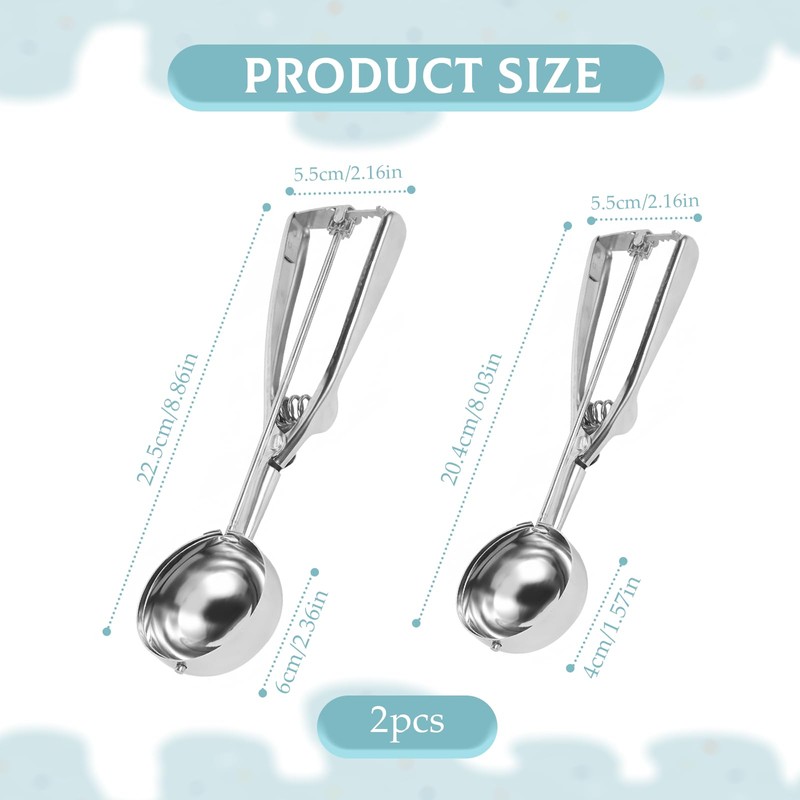 2pcs Ice Cream Scoop, Stainless Steel Ice Cream Scoop with Trigger, Cookie Scoop, Icecream Scoop, Potato Scoop for Meatballs, Mellon Balls, Mashed Potatoes and Muffins(4 cm with 6 cm)