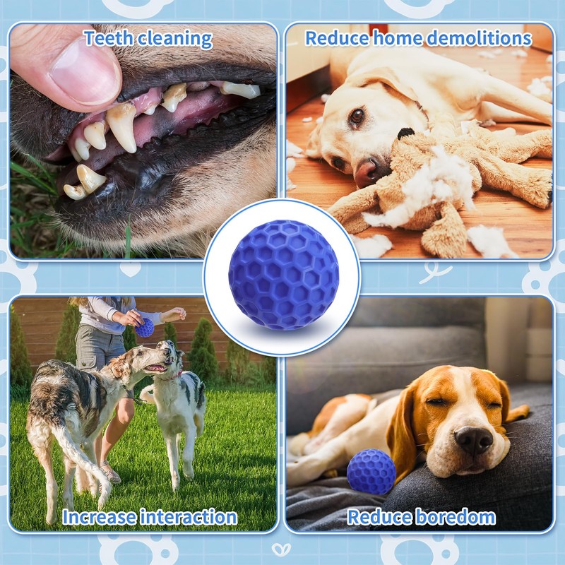 • Honeycomb Design: Our indestructible dog toys feature a unique honeycomb texture that not only adds to their durability but also promotes dental health. You can easily apply your dog's favorite treats to the surface, transforming playtime into an enjoyable teeth-cleaning experience