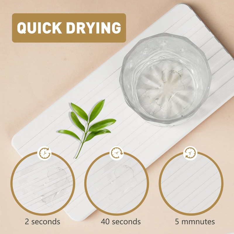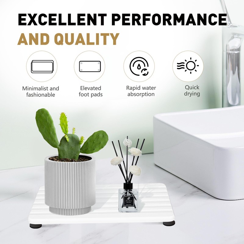 - UPGRADED STRIPE DESIGN: The strip-shaped groove design on the surface of the quick dry stone sink tray accelerates water absorption and evaporation, and has an anti-slip effect. Perfect design created for the modern home, to make life clean, comfortable, and orderly.