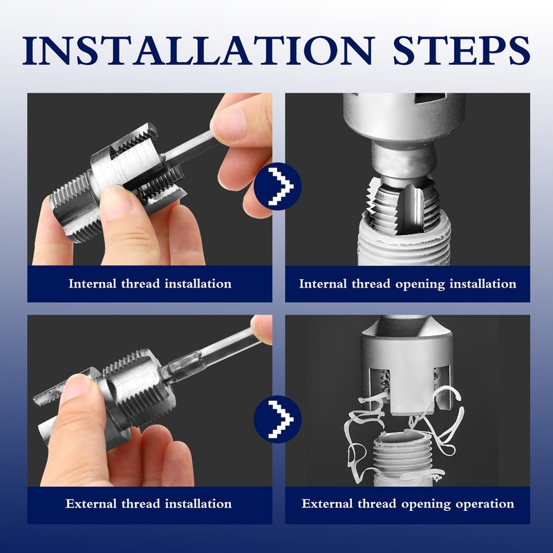 • Sturdy Carbon Steel Construction: These high-quality carbon steel drill accessories have high hardness, are sturdy and not easy to deform or damage. These drill attachments ensure smooth, precise and efficient pipe threading.