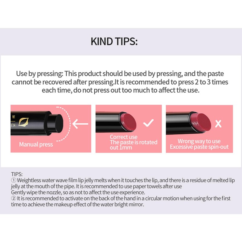 - Versatile Use:Ideal for everyday wear or special occasions, this Jelly Gloss Lipstick can be layered for a more intense color or worn alone for a subtle, glossy look