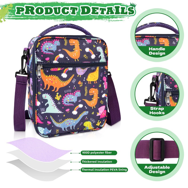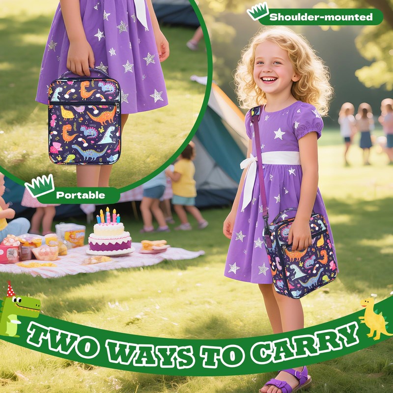 - 【Comfortable and Convenient】Lunch tote for kids is equipped with widened and padded shoulder straps and top handles, the shoulder straps are detachable, providing a variety of wearing methods for easy carrying. The spacious main compartment and front zipper pocket can store everything your child needs for lunch.