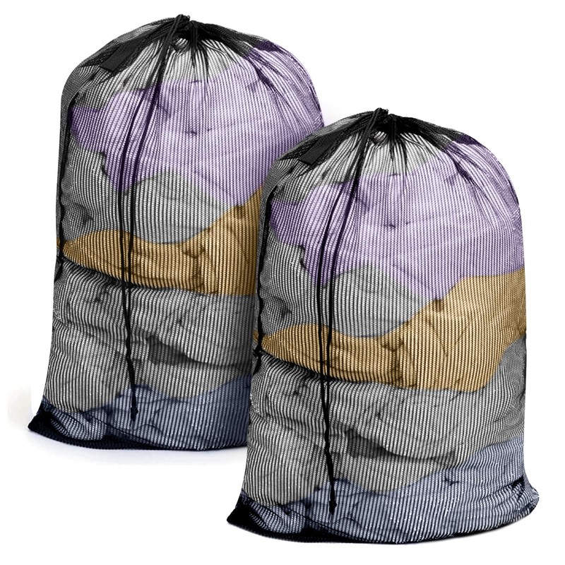 2PCS Large Mesh Laundry Bag with Drawstring, 23×35 inch Anti-Deformation and Wear-Resistant Mesh Bag for Washing Machine