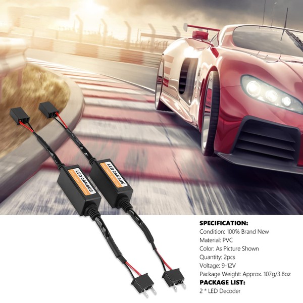 2Pcs LED Canbus Headlight Decoder Device PVC Material Anti-Flicker Resistors Error Canceller for H7