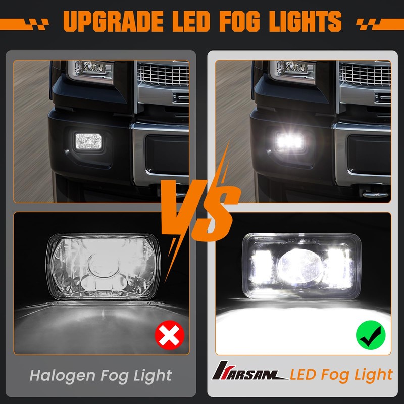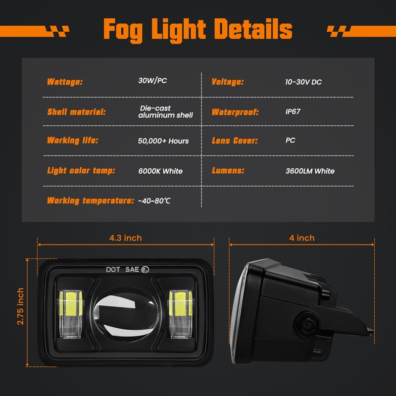 - DURABLE AND RELIABLE 2018 F150 FOG LIGHTS: Our DOT-approved fog lights for trucks adopt high quality LED chip, 300% brighter, higher color temperature, and a much wider field of light dispersion than stock halogen lamps and HID headlights, die-cast aluminum alloy housing and cooling fins to maximize heat dissipation, IP67 waterproof, super bright LED fog light lasts more than 50,000 hours; Perfect choice if you want to upgrade your car fog lights to LED driving fog lamps
