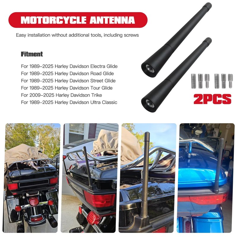2pcs Low-Profile 7-Inch Antenna for Harley Davidson Touring Bikes (1989-2025) from YTXXDEUS