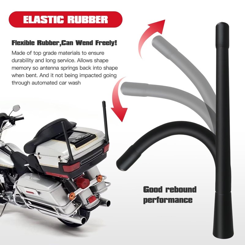 - ➤ Reliable Reception – Pre-tuned for clear signal retention, even with the shorter profile; ➤ Bend & Rebound Design – Flexible rubber construction withstands car washes and accidental bumps while springing back to shape