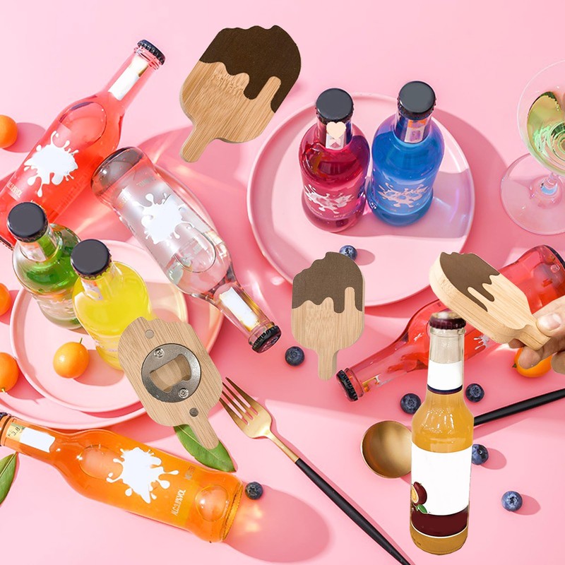 2PCS Magnetic Ice Cream Wooden Bottle Opener – Cute & Functional for Beer, Soda & More!