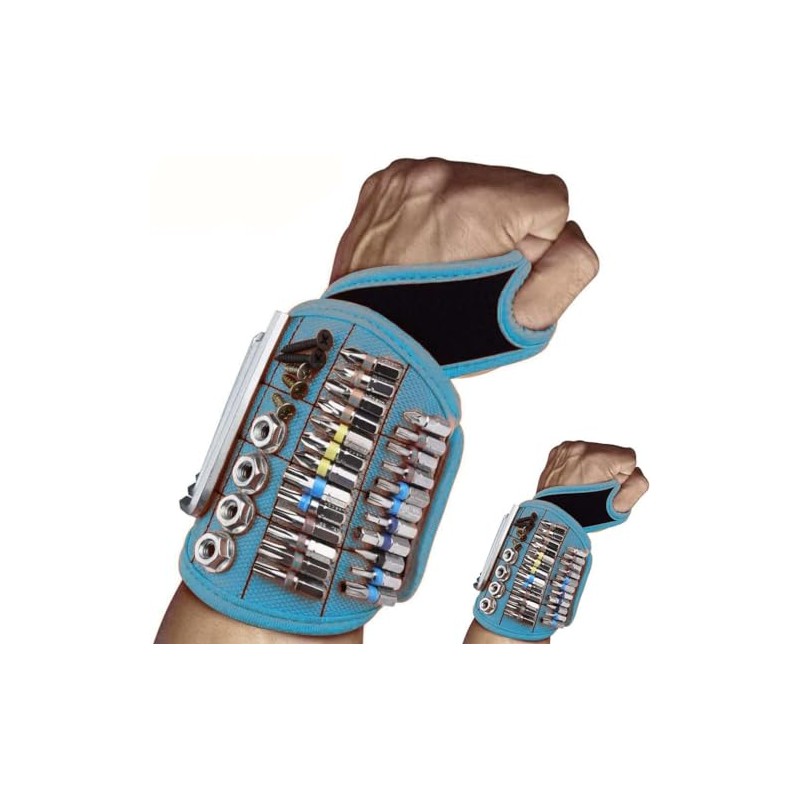 2pcs Magnetic Wristband with Super Strong Magnets Holds Screws, Nails, Drill Bit. Nail Holder with Strong Magnet Pieces Increases Convenience for DIY,Mechanics (Blue)