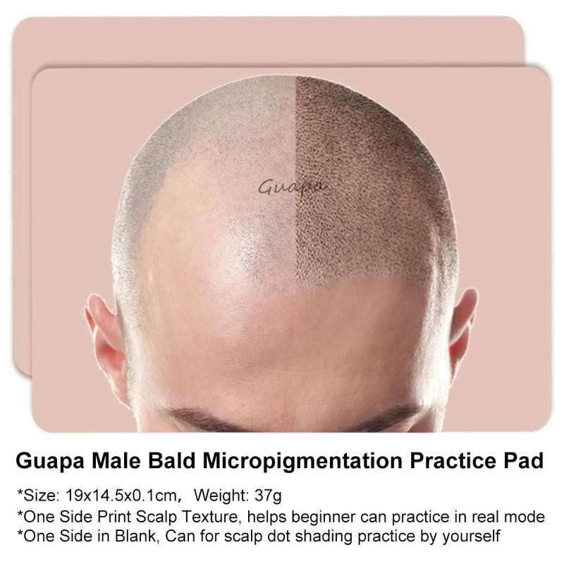 - Bald Micropigmentation Traning Pad Dual-Sided Design: One side of the practice skin is printed with a scalp image showing the simulation of thinning hair, allowing artists to observe and practice specific techniques. The other side is blank, offering creative freedom for experimenting with SMP styles.