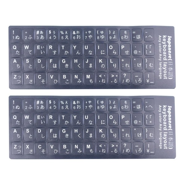 2PCS Matte Vinyl Japanese Keyboard Stickers, Japanese Hiragana Letters Keyboard Replacement Sticker with White Font on Black Background for Universal PC, Computer, Laptop, Desktop, Notebook Keyboard
