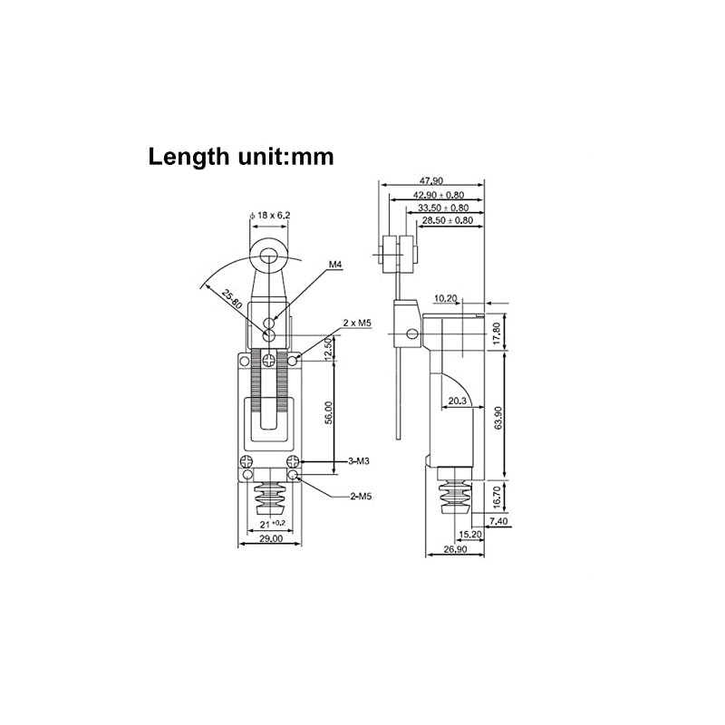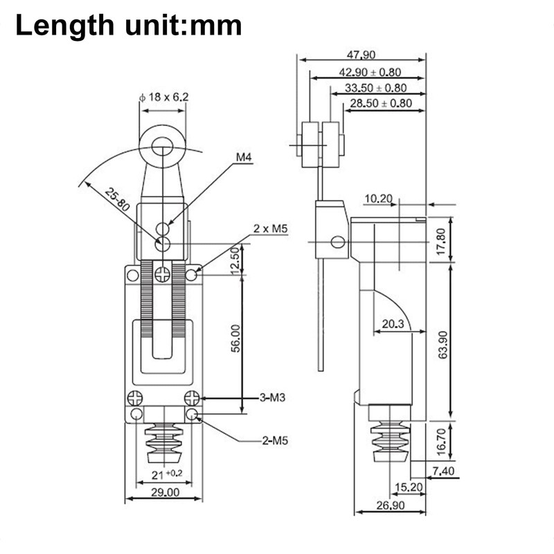 - Product name : mini limit switch; model no. : me8108; actuator action : Momentary