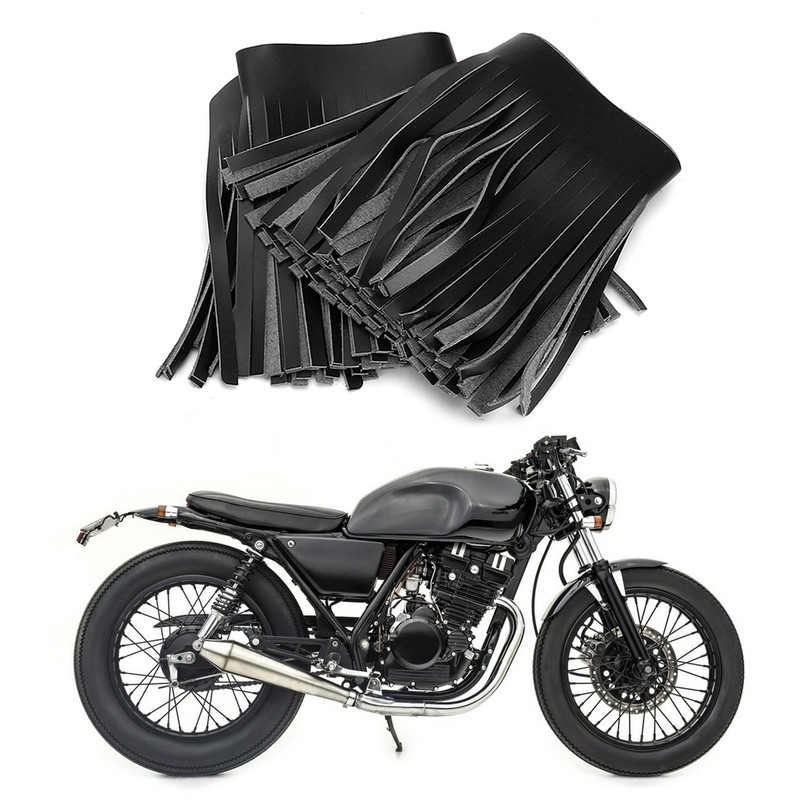 2pcs Motorcycle Retro Foot Pedal Saddlebag Craft Artificial Leather Fringe(Black)