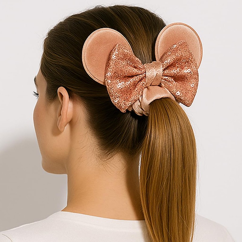 - GLITTER BOW DESIGN:Each scrunchie features a sparkling sequin bow and plush ear silhouette that instantly brightens up any hairstyle. A fun way to match with friends or siblings, and a cute finishing touch for coordinating outfits.