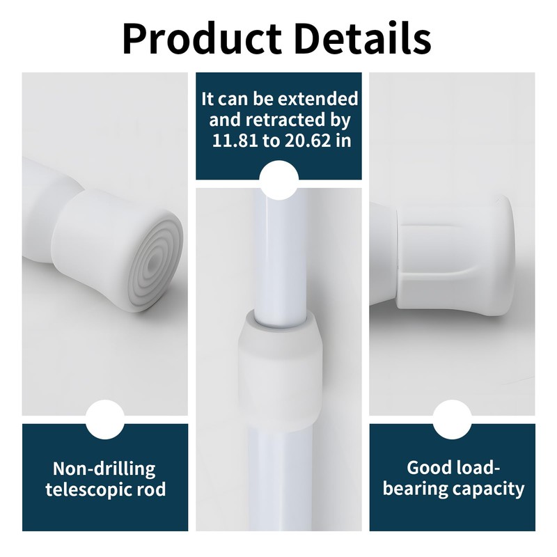 4,adjusting the length of the adjustable tension rod is easy with no tools required,making it ideal for renters or anyone not wanting to damage walls