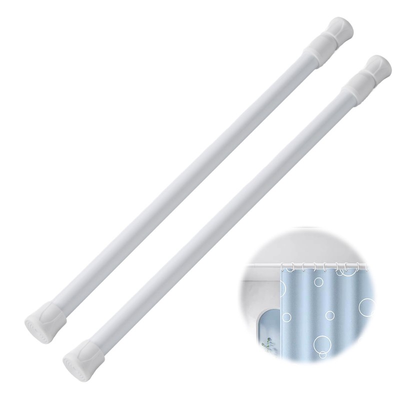 2pcs Net Curtain Rod Extendable Diameter 13mm 30 to 45cm Adjustable White Small Easy Use Tension Rods for Door Curtains Cupboard Bars Windows Bookshelf Wardrobe Bathroom Kitchen No Drill