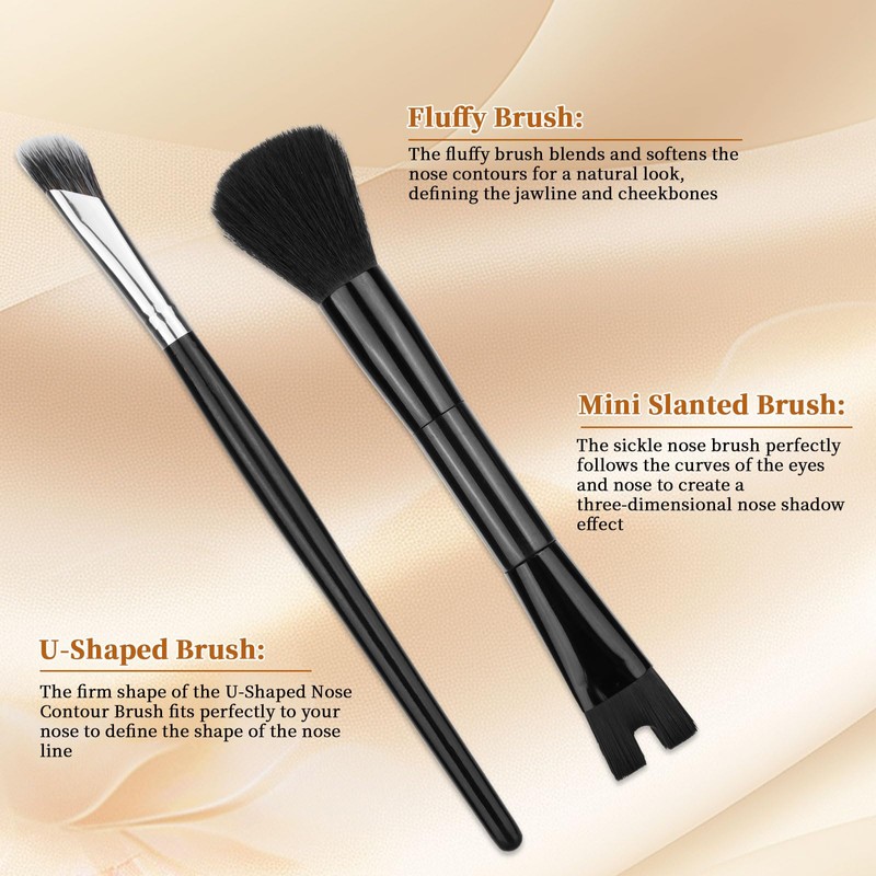 - Useful Tool: The fluffy brush can be used to blend the nose and cheeks, and to define the jawline and cheekbones; the U-shaped brush can be used to define the lines of the nose; and the angled brush can perfectly fit the curves of the eyes and nose to create a three-dimensional and natural nose shadow.