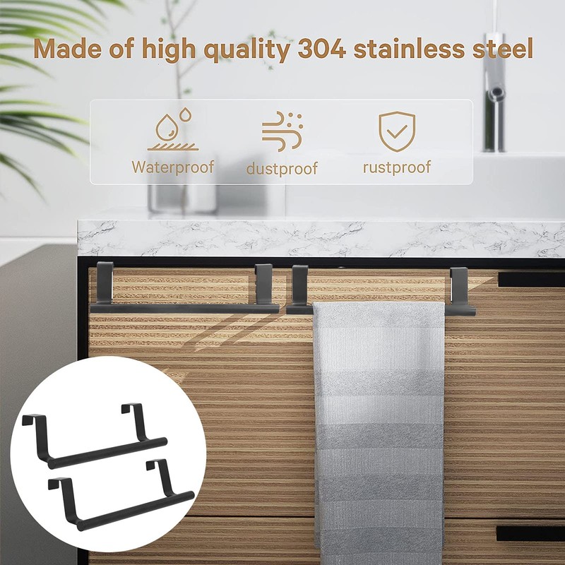 - PREMIUM MATERIAL: Rugged and sturdy, over cabinet towel bar is made of stainless steel and anti rust finish, door hanging towel rack for bathroom is not easy to rust, has a long service life, and over the door bathroom organizer towel rack can be used for a long time