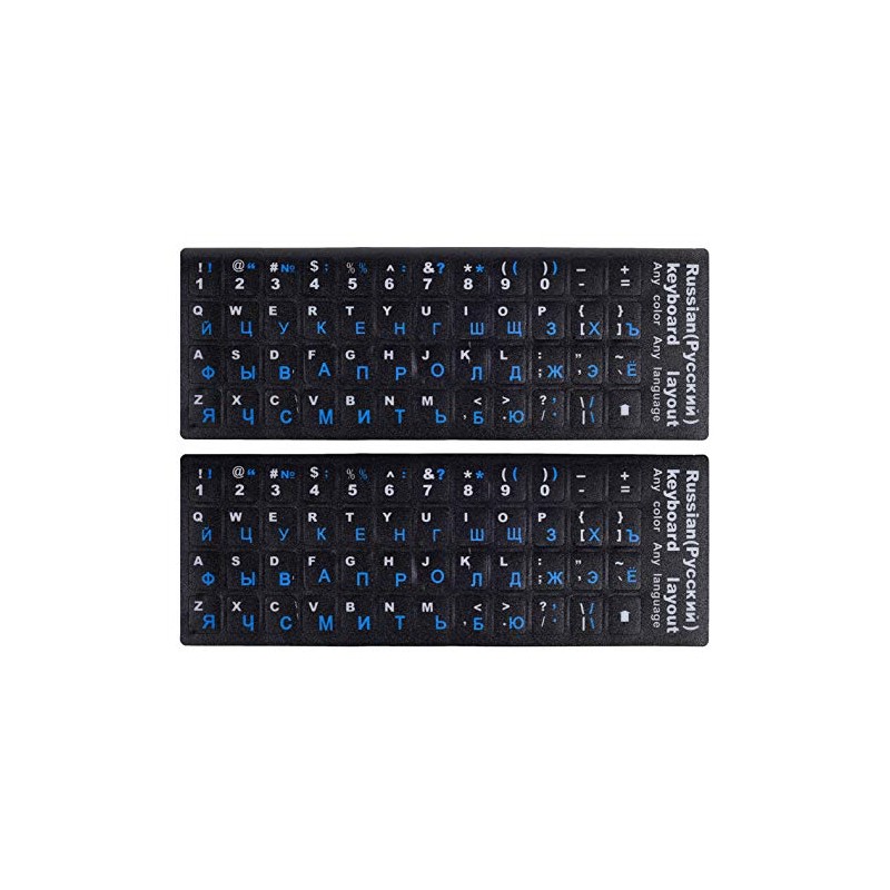 (2PCS Pack) Russian Keyboard Stickers, Keyboard Letters Replacement Stickers Russian Black Background with Blue Lettering for PC Computer Laptop Notebook Desktop Keyboards(Russian-Blue)