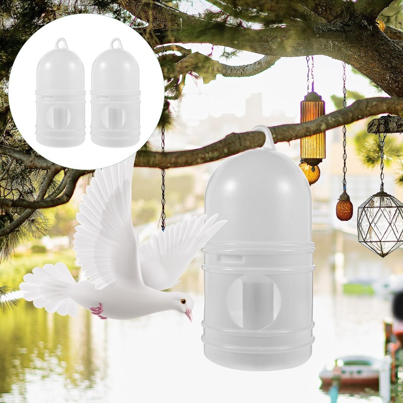- A safe, clean, simple and convenient way to provide water for birds, bring huge convenience. Drinking pitcher is sized not only for pigeons, but also for quails, chicks, and other medium-sized birds. The design of the round bottom allows the drinking fountain to be placed more stably and can be hung, allowing the birds to drink water with peace of mind