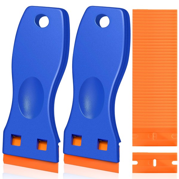 - 【Package Include】This plastic scraper tool kit includes 2 plastic scraper with 100 replacement razor blades. They are specifically designed for gentle removal of glue, stickers, decals, and labels from delicate surfaces such as glass, providing you with all the tools you need for effective cleaning.