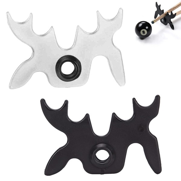 2PCS Pool Billiard Cue Bridge Head, Portable Billiard Accessories with 9 Hitting Position,Plastic Slip-On Bridge Head for Pool Stick(Black and White)