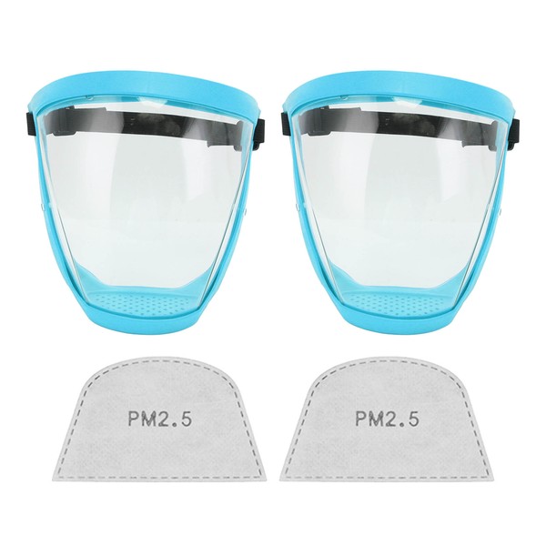 2pcs Protective Face Cover Dustproof Safety Elastic Belt Reusable Face Shield with Filter Cotton Pads Transparent Child Lake Blue