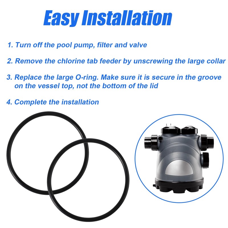 - Quick Pool Maintenance: Firstly, turn off pump, filter and close valves, then detach the chlorine feeder, secure O-ring in vessel groove (not cap underside), the installation is finished. No tools required, easy and quick for this pool equipment repair.