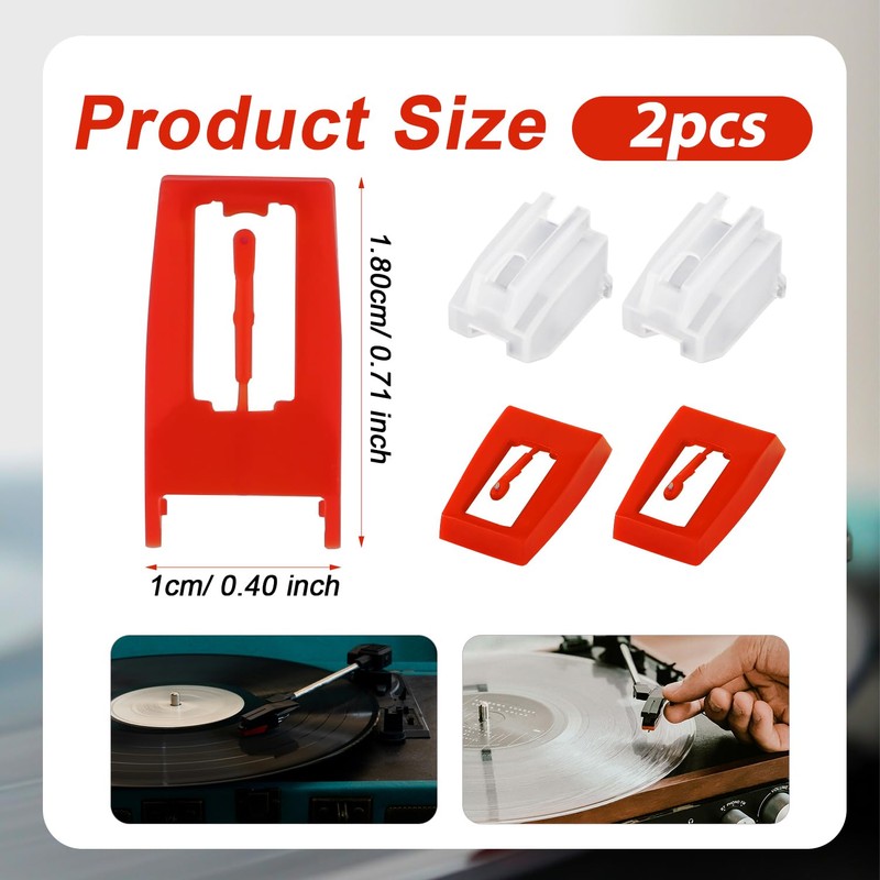 - Package Content: You will receive 2 pieces of record player needles. The size is 1.8x1cm/0.71x0.40 inch and each needle has a clear cover and stuffed with sponge to prevent damage to the needle.