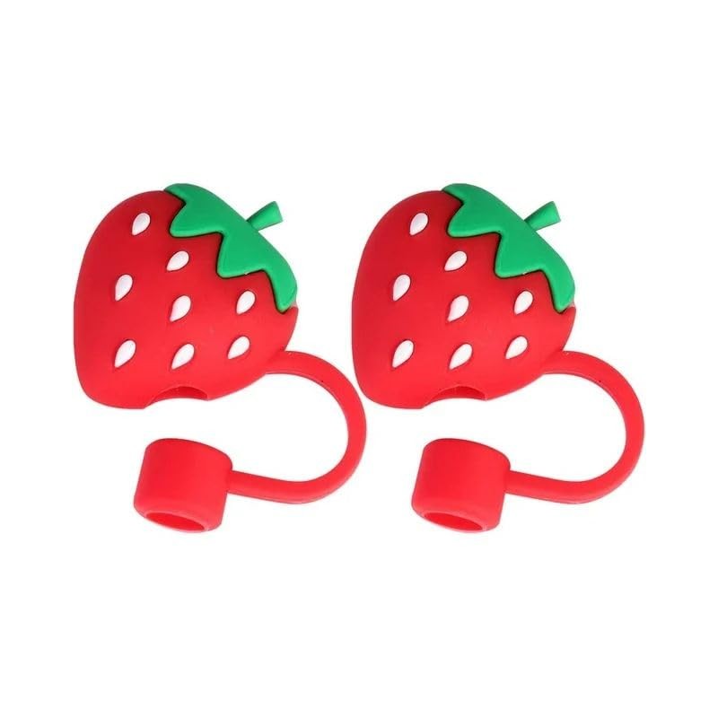 2Pcs Red Straw Cover Cap Reusable Silicone Straw Toppers, Anti-Dust Cap Reusable Straws Decorative Cap, Cartoon Straw Plug Resuable Anti-Dust Cap