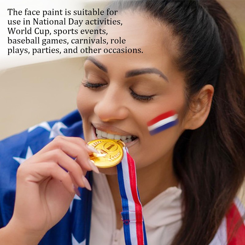 - 【Versatile Applications】This American flag face paint stick is perfect for a variety of occasions, including Independence Day festivities, children's birthday parties, soccer matches, baseball games, Halloween makeup, outdoor training sessions, and more.