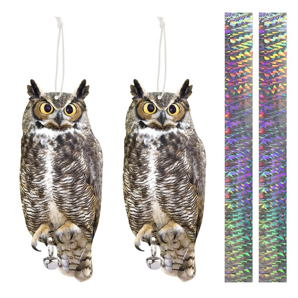 - Efficient Owl Deterrent Device: Double-sided printed owl-shaped, looks very realistic, with reflective tape, which will reflect sunlight for a shimmering and dazzling effect to driving animals away.
