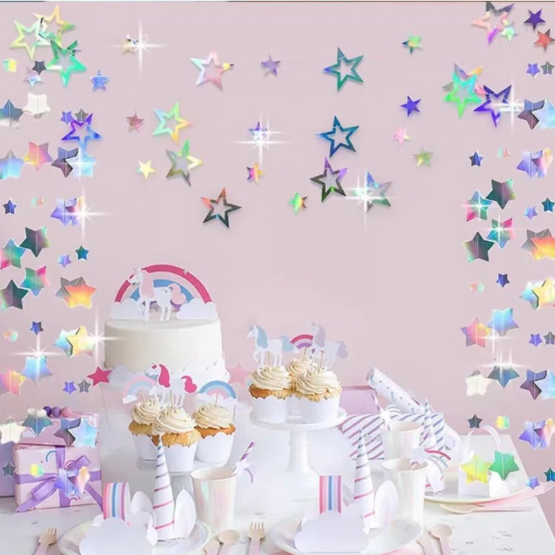 - Size Guides:You will receive 2pcs 5cm*4M reflective star paper garland.