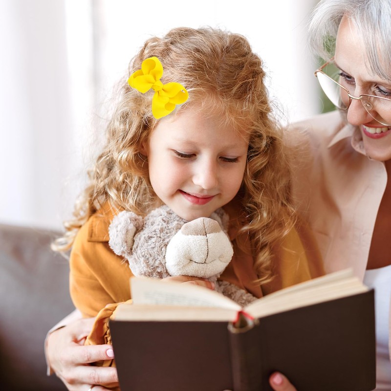 - [Bow Hair Clips' Size]: Each bow is 3 inches long and 2 inches wide, the Bright yellow bow is easier to attract attention and make your hairstyle stand out. Small and portable bow barrette lined with alligator clips and topped with a polyester ribbed band for a three-dimensional, vibrant look.