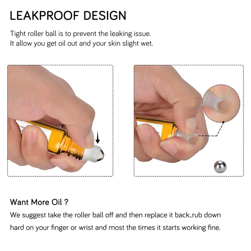 - [Easy And Precise Application] The built-in stainless steel rollerball allows for precise and controlled dispensing to a specific part of the body, while the premium amber glass bottle provides the best UV protection to help maintain the oils' composition and prevent oxidation.
