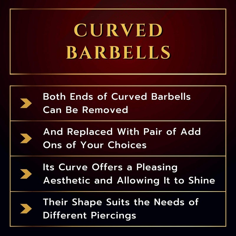 - These smooth and shinny Curved Barbell Stud have a reliable fastening ideal for PROLONGED WEAR.